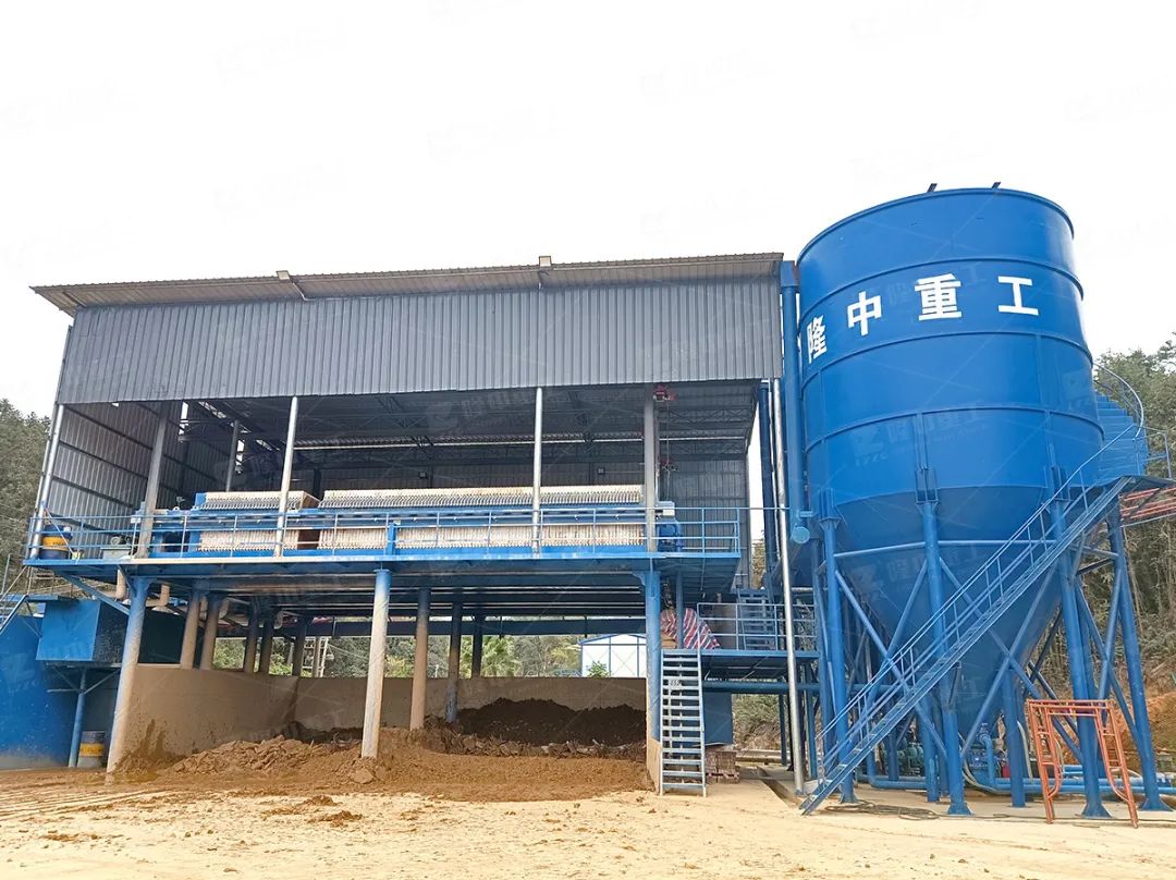 3、回收裝置溢流污水進入污水池,再通過三氫凈化體專用泵送至三氫凈化體進行濃密,經(jīng)三氫凈化體濃密后的泥漿由壓濾機專用泵抽取,打入廂式壓濾機進行壓濾,并形成泥餅然后干排;
